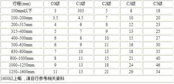 各種螺桿長度的導程誤差(單位:um)如下表所示: